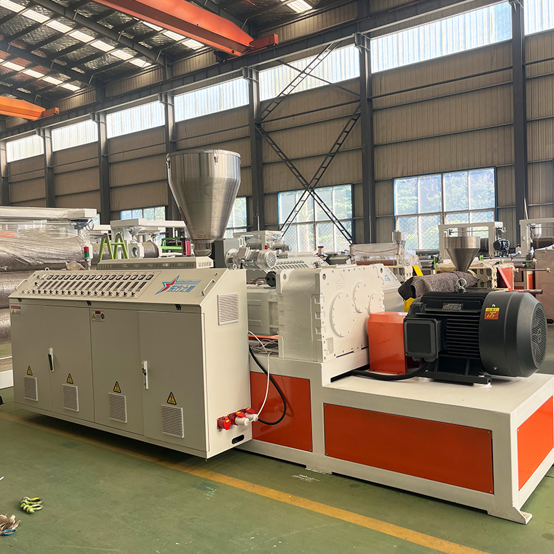শঙ্কুযুক্ত টুইন-স্ক্রু এক্সট্রুডার, বিভিন্ন স্পেসিফিকেশনের ছাঁচ এবং সহায়ক সরঞ্জাম দ্বারা সজ্জিতকিংদাও ইস্টস্টার প্লাস্টিক মেশিনারি কোং লিমিটেড,পাইপ, শীট এবং প্রোফাইলের মতো প্লাস্টিক পণ্যগুলিতে সরাসরি পিভিসি পাউডার প্রক্রিয়া করতে পারে।
