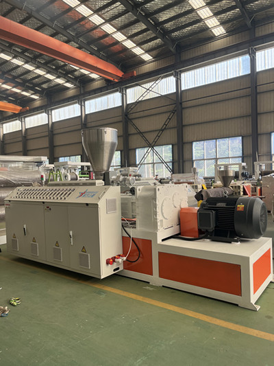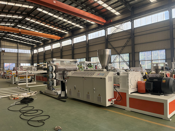 নীতি: পিভিসি প্রিমিক্সটি এক্সট্রুডারে খাওয়ানো হয়, স্ক্রু দ্বারা উত্তপ্ত এবং শিয়ার করা হয় এবং তারপরে একটি ফ্ল্যাট ডাই একটি শীটে ডাইয়ের মাধ্যমে এক্সট্রুড করা হয়। শীটটি তখন ঠান্ডা, সেট এবং কাটা হয়।