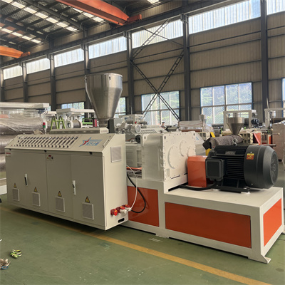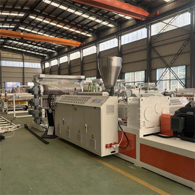মিশ্র কাঁচামাল একটি স্ক্রু ফিডারের মাধ্যমে আমাদের টুইন-স্ক্রু এক্সট্রুডারে প্রবেশ করে। স্ক্রু গরম করার কর্মের অধীনে, প্লাস্টিক গলে যায়। গলিত পিভিসি টি-ডাই এর মধ্য দিয়ে যায় যাতে একটি শীট ফাঁকা হয়।
