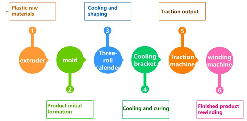 গলে যাওয়া এবং প্লাস্টিকাইজিং:এক্সট্রুডারের উত্তপ্ত স্ক্রু কাঁচামালকে একজাতীয় গলে ফেলে, অমেধ্য ফিল্টার করে এবং চাপকে স্থিতিশীল করে।